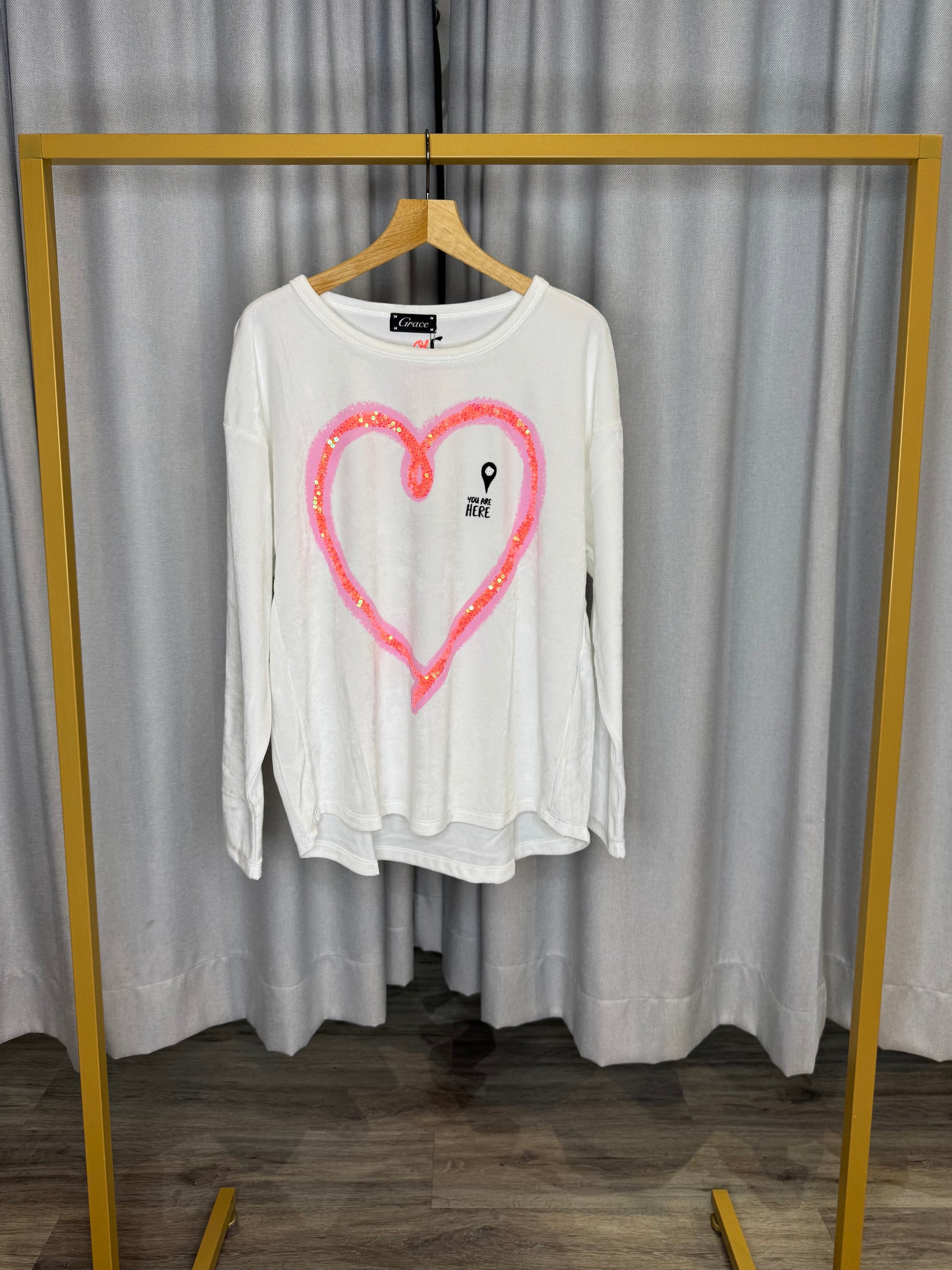 • Herzaufdruck mit Pailletten